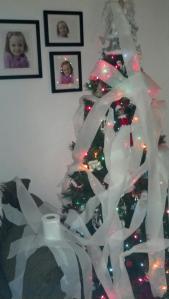I couldn’t believe it! The little f*cker had actually TP’d our Christmas tree! The thing I, Nicole and Cara (not to mention Zygote Natalie by association) had worked so hard to set up and decorate just a few, short weeks before. The core of our Marsh family, Christmas tradition. I won’t lie to you guys: I felt betrayed. I felt like Jingle had just been stringing me along with his seemingly innocent gestures and comradeship all in preparation for his final gag. I cleaned up the mess as best I could, but not before Nicole came home from work, saw it, screamed and about hung Jingle by his booties over the Harvest Spice candle I had burning in the dining room. But she didn’t. She simply muttered something about him “never coming back… ever” and retired to our room with a sigh of disgust. She left me to deal with him, because really? It had been my alliance with him, not hers that had brought about the destruction of our Christmas tree.